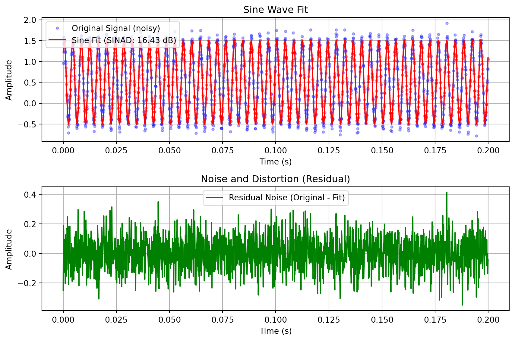 # The "Signal" for SINAD is the pure fitted sine wave, WITHOUT its DC offset.